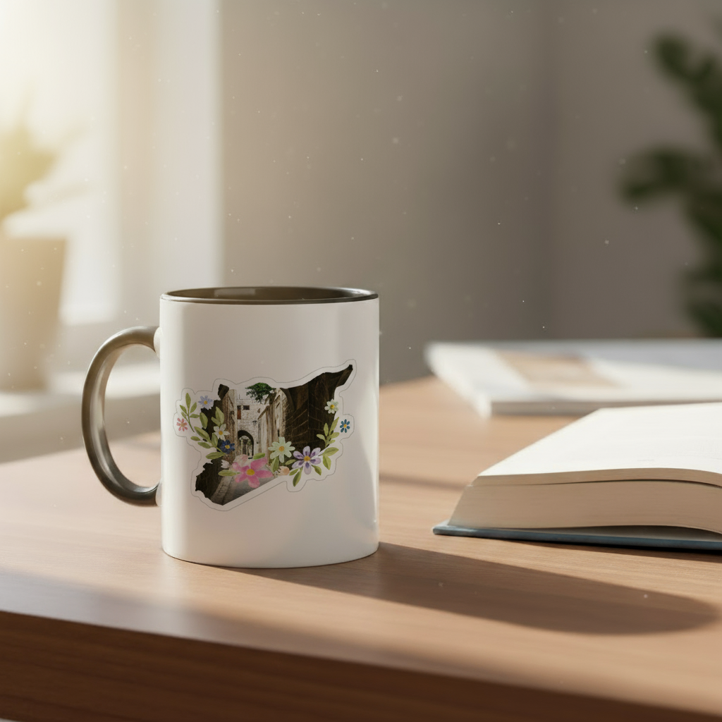 This beautiful ceramic mug is perfect for any event of the day. Your morning coffee, a hot chocolate, or any other hot beverage you enjoy. The mug is glossy white with a colored rim, inside, and handle. The prints come out beautifully and vividly on it. The print retains its quality and luster when used in both microwaves and the dishwasher.